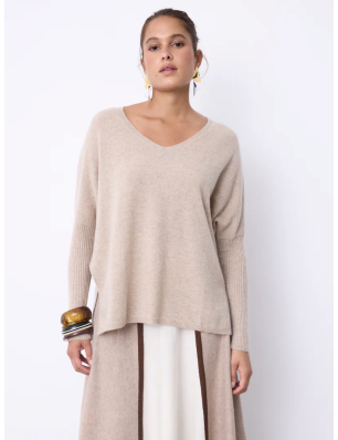 Pull poncho en cachemire beige signé Not Shy, col V, manches longues