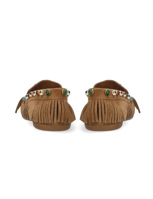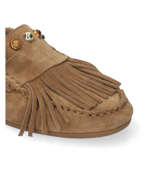 Les mocassins Guava couleur tan de la marque Bibi Lou sont conçus pour offrir un look sophistiqué tout en restant décontracté. Leur texture est douce au toucher et leur aspect velouté apporte une touche élégante tout en restant résistants dans le temps La semelle est constituée en caoutchouc. Les franges et perles de couleurs en font un modèle singulier et très tendance.