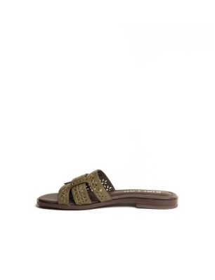 Les sandales plates Holly de Bibi Lou en couleur kaki combinent caractère et style contemporain dans un design polyvalent pour le jour. Le cuir perforé apporte une légèreté visuelle et un jeu de texture subtil qui ajoute de la profondeur au modèle.