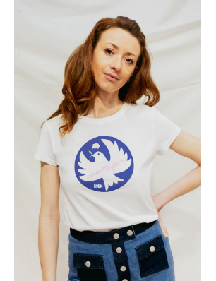 Tee shirt Amour de Brigitte Bardot en coton blanc avec motif colombe.