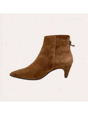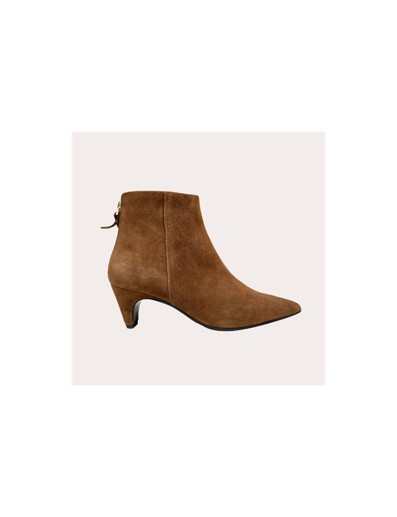 Élégantes et intemporelles, les bottines Eva Luna en cuir velours camel sont l’allié parfait de vos looks du quotidien comme des occasions plus habillées. Leur ligne fine à bout pointu et leur petit talon de 5 cm offrent féminité et confort. La fermeture zippée discrète à l’arrière facilite l’enfilage tout en apportant une touche moderne. Ces bottines subliment aussi bien un jean slim qu’une robe fluide, pour un style chic et sans effort.