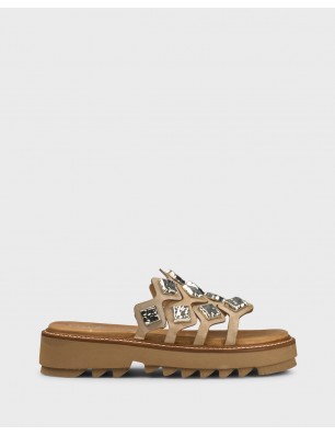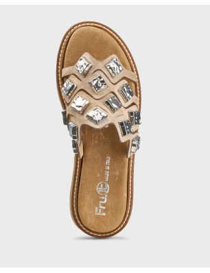 Ces mules Fruit sont ornées de bijoux argentés qui scintilleront à la lumière du soleil. Elles sont réalisées en Italie à partir de cuir naturel, possèdent 4 brides et reposent sur des semelles plates-formes de 40 mm.