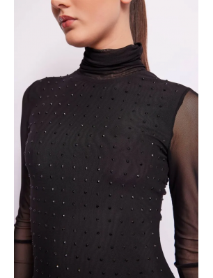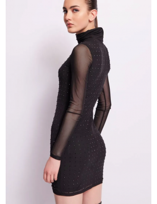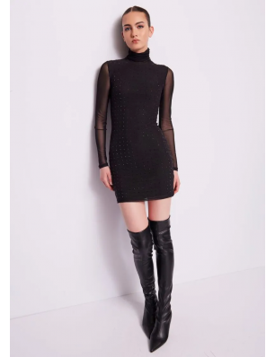 Mini robe noire à manches longues et col montant. Cette robe de Gaudi est réalisée en tulle orné de strass noirs. Elle est dotée d'une fermeture éclaire dans le dos et elle est doublée. Associez-lui des baskets ou des talons, selon l'occasion.