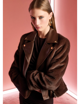 Gaudi vise à créer des vêtements à la fois simples et saisissants, ce qui résulte en des essentiels élégants et faciles à porter qui constitueront la base de nombreuses tenues. Cette veste perfecto, un parfait exemple, est réalisée en style vison et cuir à la nuance marron profonde et possède une ceinture qui met en valeur sa coupe raccourcie. Elle se ferme à l’aide de boutons pression dorés gravés du logo de la marque, et présente une doublure pour plus de confort et un enfilage aisé.