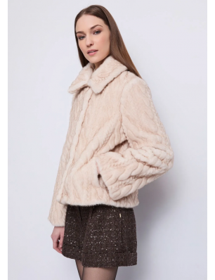 Cette veste en vison synthétique beige que signe GAUDI est particulièrement tendance. Elle adopte une coupe pour une allure luxueuse, duveteuse et ultra-glamour, et présente des revers saisissants et s’achèvera au niveau de vos hanches. La pièce parfaite pour accompagner un tailleur soigné ou une robe du soir.
