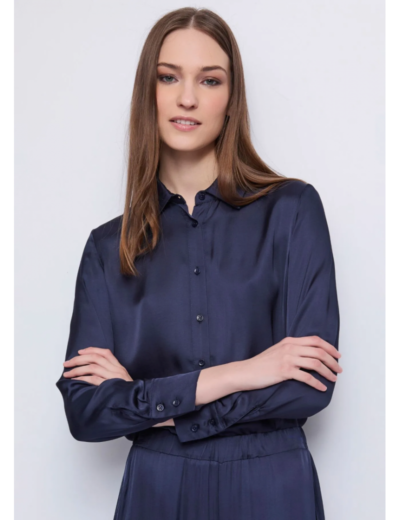 Cette chemise bleue signée Gaudi est d’un chic intemporel. Elle est confectionnée en satin au tombé naturellement élégant.