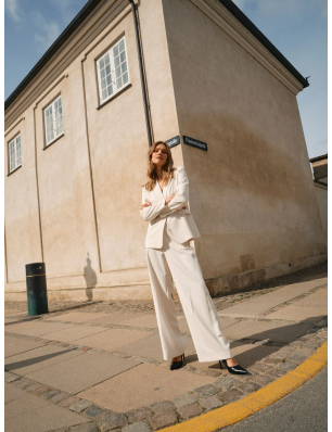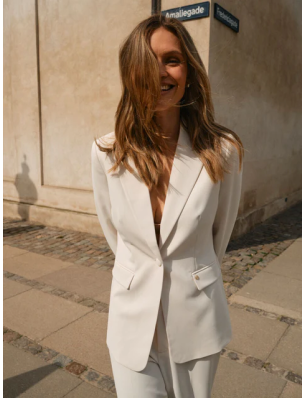 Ce blazer signé MosMosh présente une coupe élégante et féminine, des revers classiques et une fermeture à un bouton. Sa silhouette ajustée met en valeur la silhouette et crée une allure sophistiquée, idéale pour le travail comme pour les occasions plus formelles. Portez-le avec le pantalon assorti pour un ensemble complet ou sur une robe ou un jean pour une tenue moderne et épurée