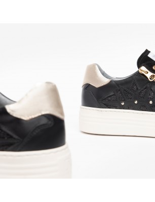 Baskets basses à semelles épaisses Nero Giardini en cuir noir avec empiècements pailletés