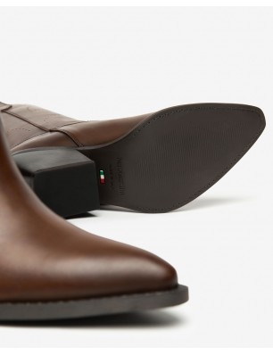 Né du mariage entre l’élégance italienne et la fougue de l’Ouest américain, les santiag cultive une esthétique tout en contrastes. Ces bottes Nero Giardini ont été réalisées en Italie à partir de cuir souple et empruntent leur silhouette raffinée à celle des modèles de cow-boy traditionnels, notamment grâce à leur bout fuselé et à leur épais talon oblique.