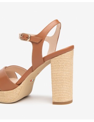 Nero Giardini sandales en cuir camel à talon bloc avec plateau