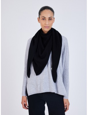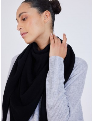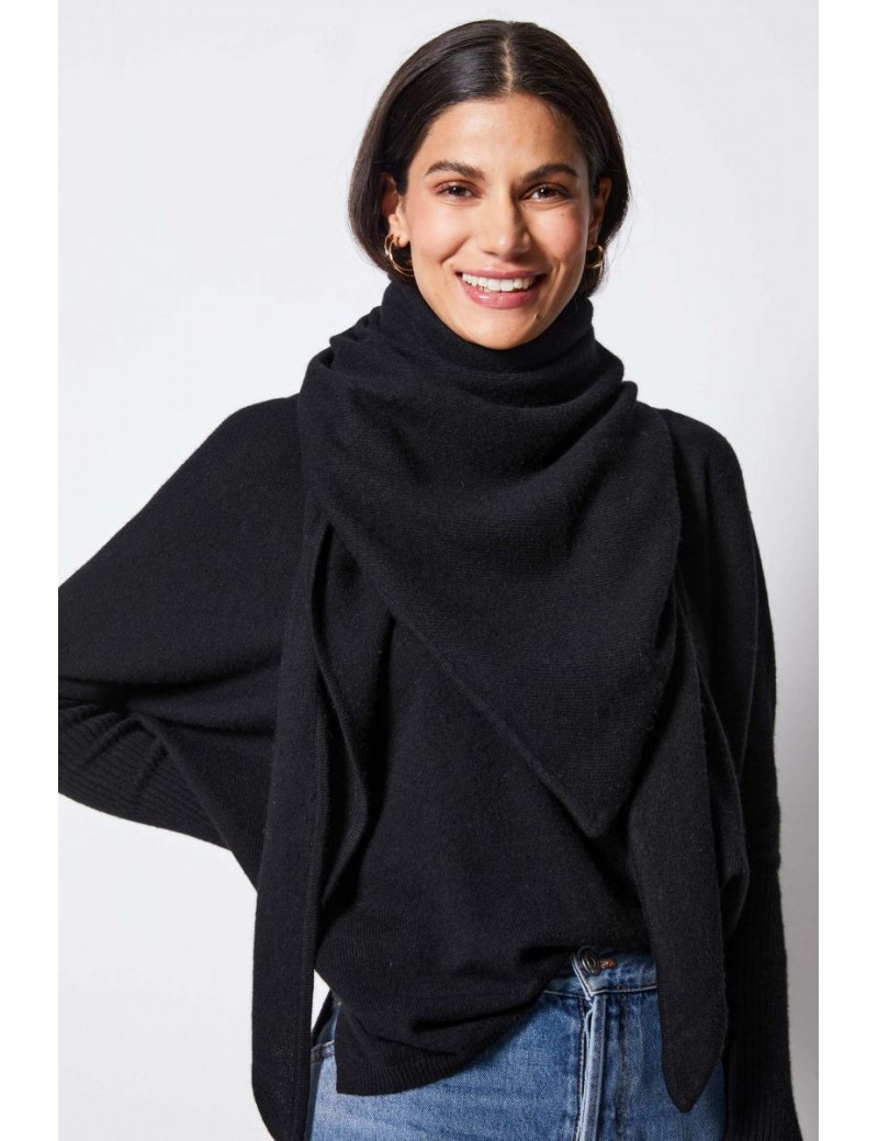 Enveloppez-vous de douceur avec l'écharpe Eleonore de NOT SHY. En forme triangle 100% cachemire couleur noir intense, elle peut se porter de multiples façons pour accessoiriser vos looks ! Elle est associée avec le pull col V Penelope. 100% cachemire 2 fils 12GG