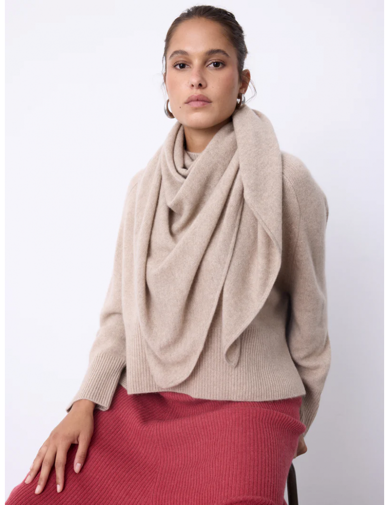 Écharpe Not Shy forme triangle en cachemire beige.