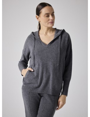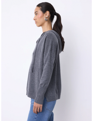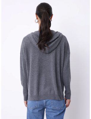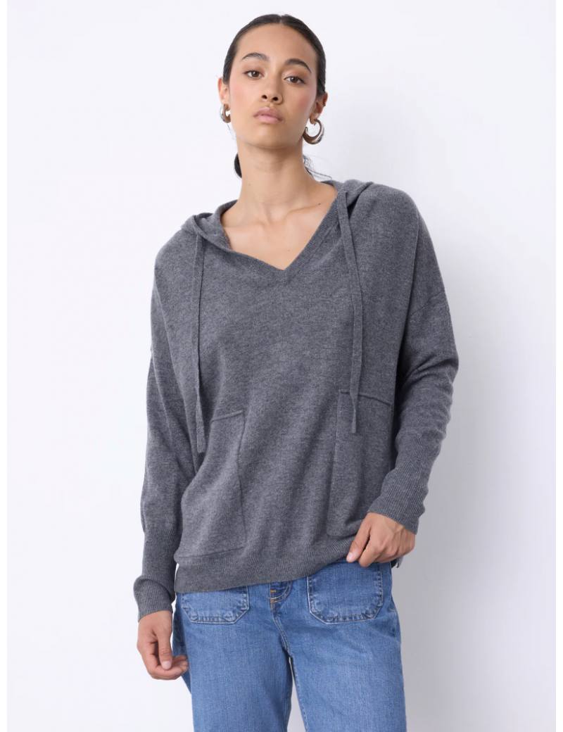 Pull Not Shy en laine et cachemire gris avec capuche et poches.